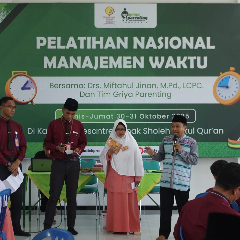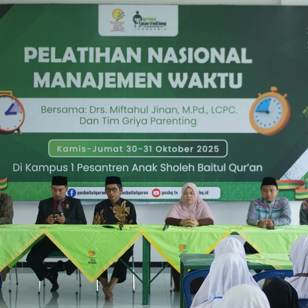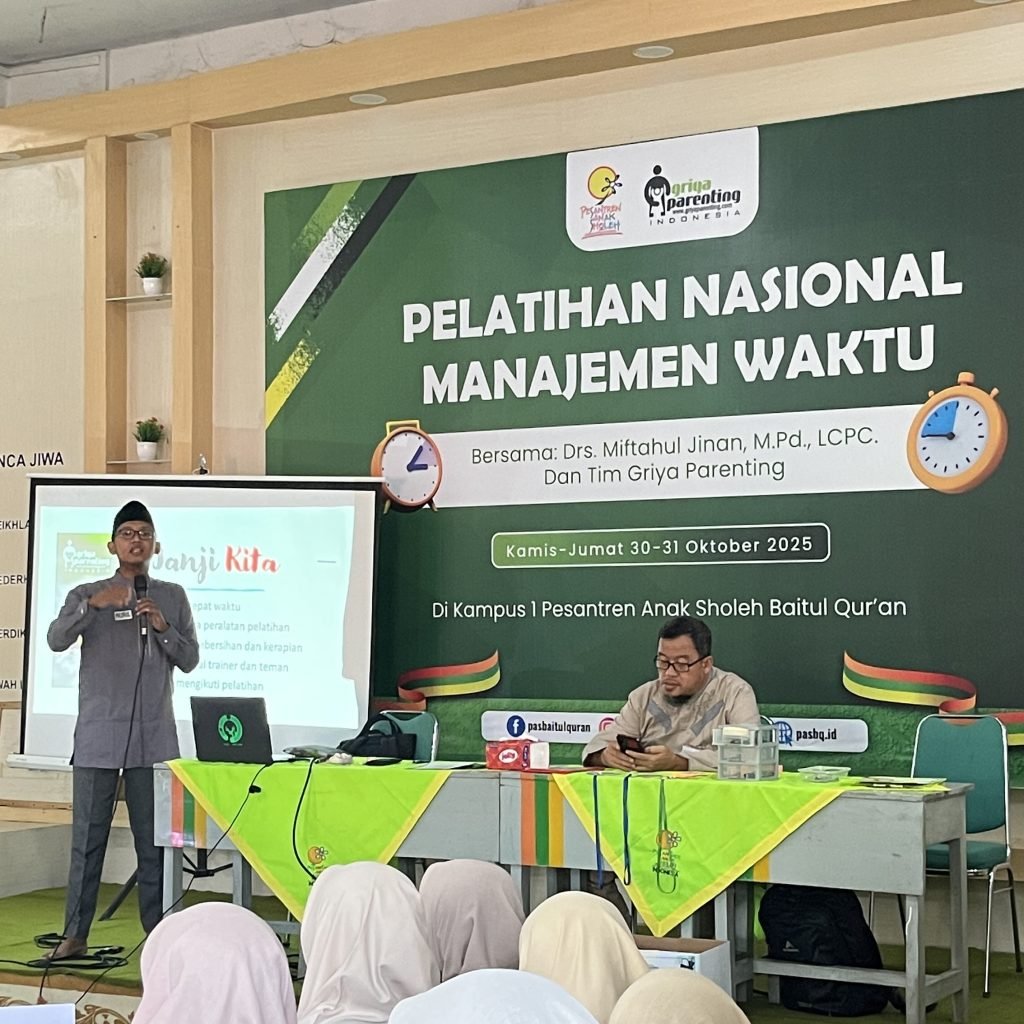 Gontor – Dalam upaya memperkuat budaya disiplin, efektivitas, dan profesionalisme bagi para pendidik, Pesantren Anak Sholeh (PAS) Baitul Quran menyelenggarakan Pelatihan Nasional Manajemen Waktu dan Prioritas selama dua hari, pada 30-31 Oktober 2025. Kegiatan berlangsung di Aula PAS Baitul Quran yang diikuti oleh lebih dari 350 peserta dari berbagai cabang Pesantren Anak Sholeh se-Indonesia.